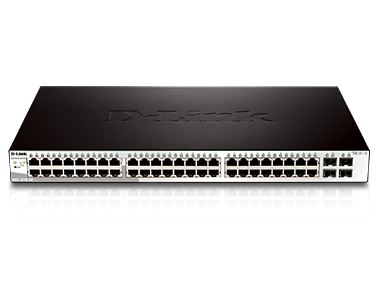 DGS-1210-52, 48 x 10/100/1000Mbps Ports, 4 x Combo 1000BaseT/Mini-GBIC SFP ports, Advance power saving features, Fanless design, IEEE 802.3x Flow Control, 802.3ad Link Aggregation, Asymmetric VLAN, Auto Voice VLAN, 802.1p priority queues, MAC/IP filtering, MAC/IP-based ACL, 802.1X port-base Access Control, Port Security, D-Link Safequare Engine, Smart Console Utility, web based management, compact CLI, D-View 6.0 support, 19" Rackmount Installation