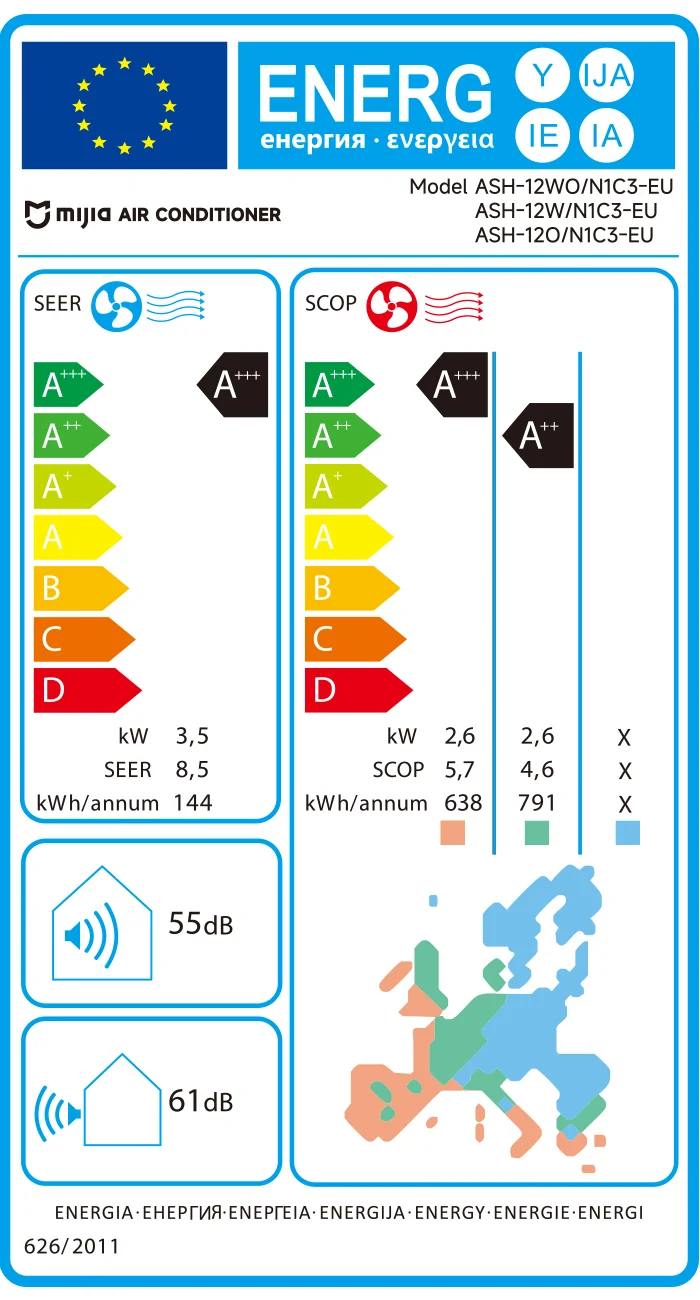 - Učinkovitost grijanja: A+++ u toplim klimama | A++ u prosječnim klimama
