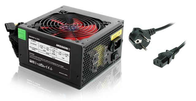 MISSION Q 500 napajanje + kabel za napajanje, ukupna snaga 500W, crno kućište, 12cm crveni ventilator, ATX 1.3, pasivni PFC, ON/OFF prekidač, 20+4 pin, 4pin 12V, SATA x3, Molex x2, PCIe x1, FDD x1, NAPOMENA: ZA UGRADNJU U MANJA KUĆIŠTA!