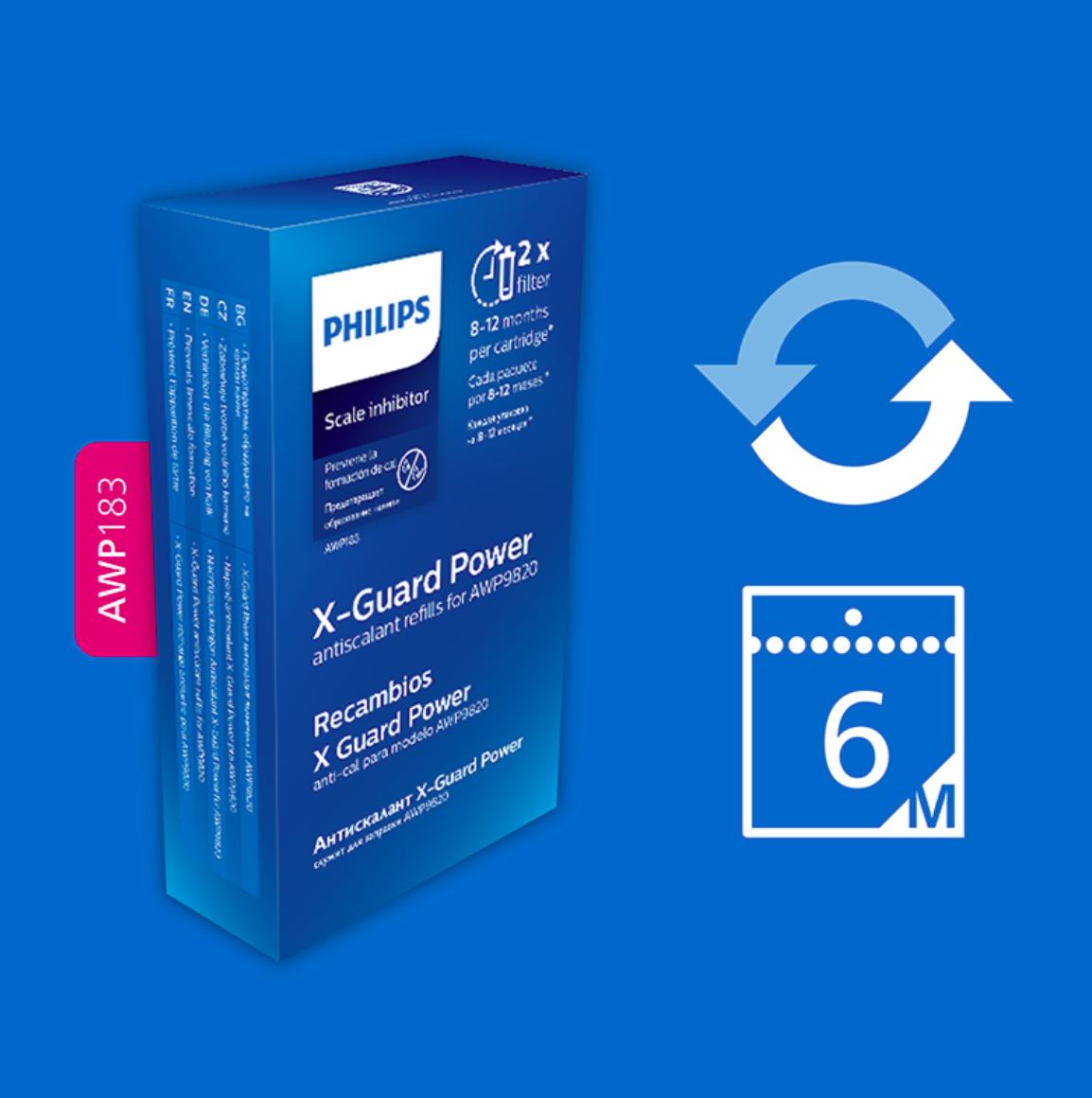 Potpuna zaštita za vaše kućanske aparate. X-Guard moćno punjenje protiv kamenca za Philips inhibitor AWP9820, koje učinkovito sprječava stvaranje kamenca i smanjuje čestice, štiteći vaše uređaje za grijanje vode, kao što su bojleri, perilice rublja i posuđa.