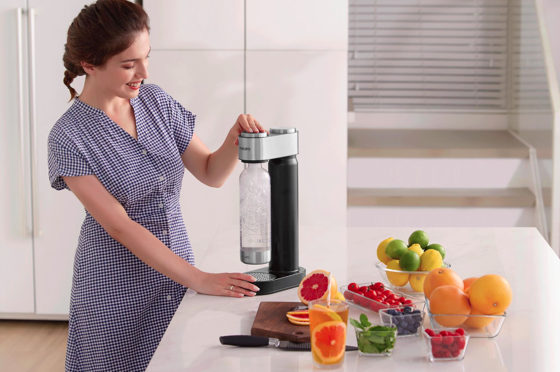 Počastite se osvježavajućom gaziranom vodom u bilo kojem trenutku uz aparat za soda Philips GoZero. Sve što trebate učiniti su 3 laka koraka - napuniti, zavrnuti i pritisnuti! Elegantan dizajn sa završnom obradom od brušenog nehrđajućeg čelika lako se uklapa u stil Vaše kuhinje ili doma.