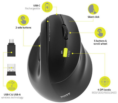 Port miš 2.4 GHz BT erg. punjivi za dešnjake, crni